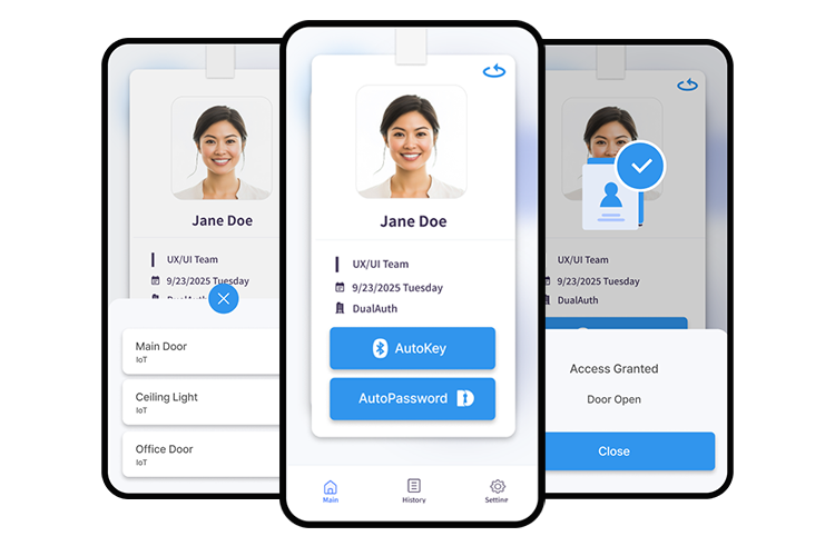 AutoPassword ID Card uses the smartphone’s built-in biometric data, so even if the device is stolen, it will not function unless the biometric information matches the ID holder.