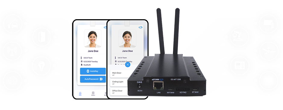 The AutoPassword IoT Controller is an IoT control device that allows users to operate various physical facilities—such as doors, lighting, and electrical appliances—using the mobile ID registered on their smartphone. Without replacing or modifying existing equipment, simply connecting the controller to a switch grants users with an AutoPassword ID Card the authority to control the device.